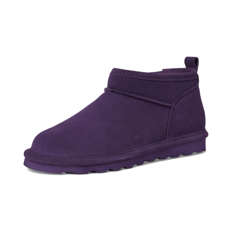 - The BEARPAW Super Shorty Shearling Style Boots feature suede upper construction treated with BearCoat rain and stain-repellent finish. Offering all-day comfort, this round toe pair features removable comfort sheepskin footbed and lightweight blown rubber outsole.