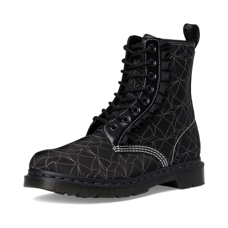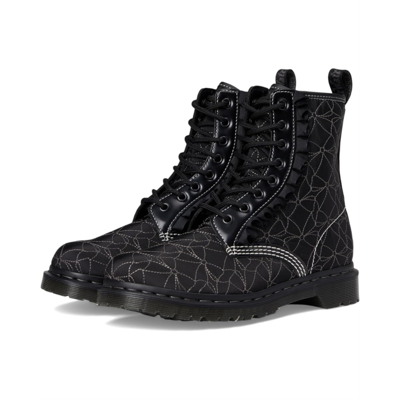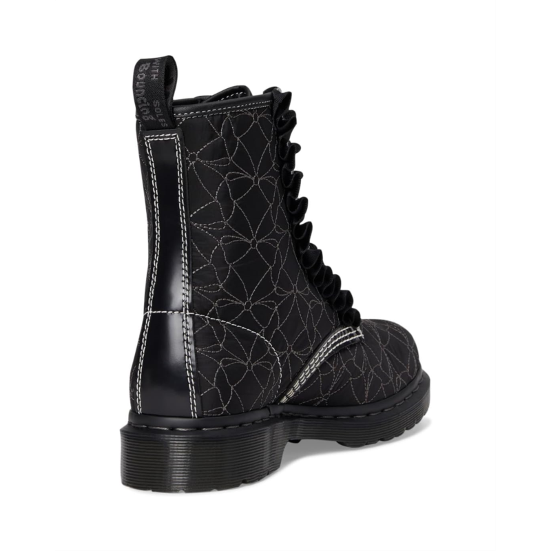 - All frills. The Dr. Martens 1460 Frill 8-eye ankle boot sees the original DM''s silhouette embellished with bows and frills. Crafted in Buttero, a soft leather with a satin gloss and supple feel, the upper is stitched with intricate bows and contour lines in contrasting thread while weaving frills behind the eyelets and laces. The boot is accented with a gunmetal and heel loop, welt stitching and a DMS sole with classic grooving.