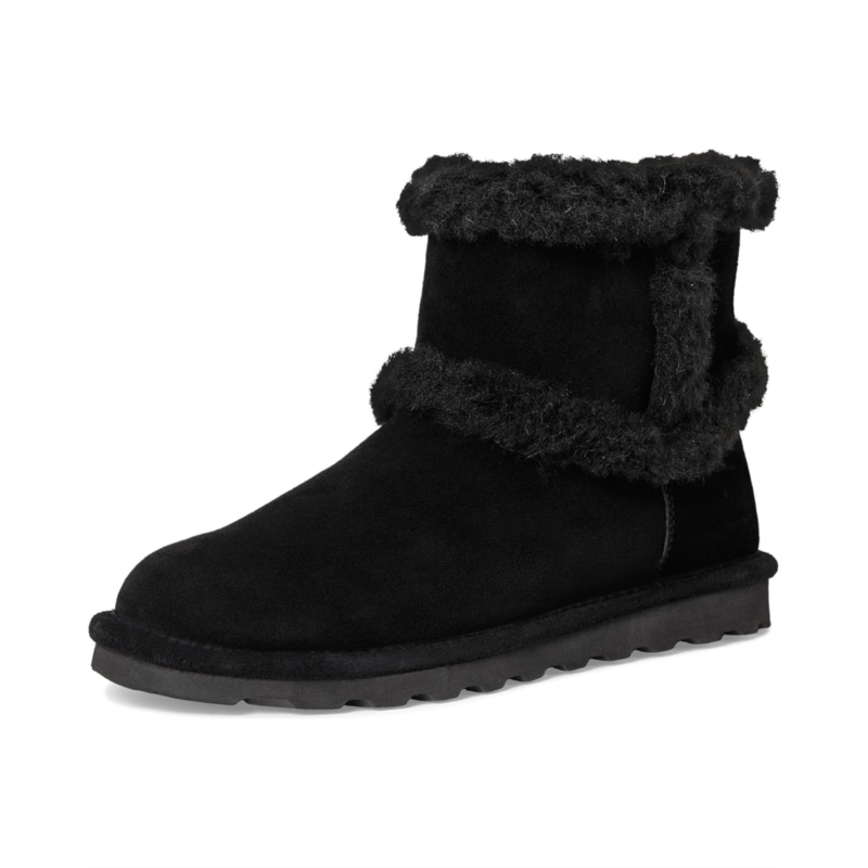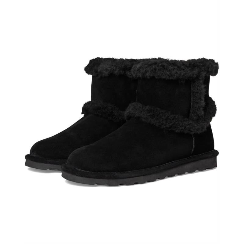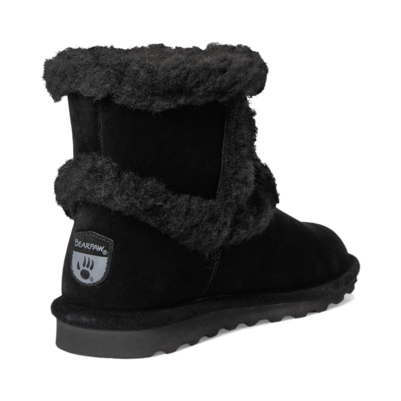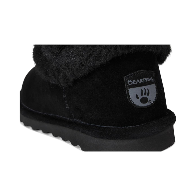 - Cozy up in the Bearpaw Kate boots. A timeless silhouette paired with a trendy exposed fur trim, these calf-high boots are the perfect pairing for this season and many to come. Their suede upper is treated with Bearcoat protection for added weather protection. These pull-on boots are made of a wool insole and wool-blend lining.