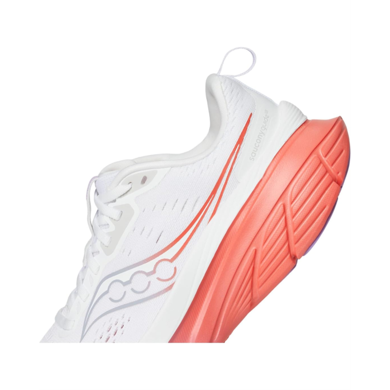 - Power through your day sporting the Saucony Guide 18, a perfect fusion of style, support, and all-day comfort. Featuring a premium leather upper for durability and a sleek look, this sneaker keeps you cool with its breathable mesh design and soft nylon lining. The EVA insole cradles your foot with plush comfort, while VERSARUN cushioning absorbs impact, reducing pressure for a smooth ride. A sturdy rubber outsole offers superior grip and durability, keeping up with your every move. With a offset and a secure lace-up closure, this shoe is built for effortless, stable strides-wherever life takes you!