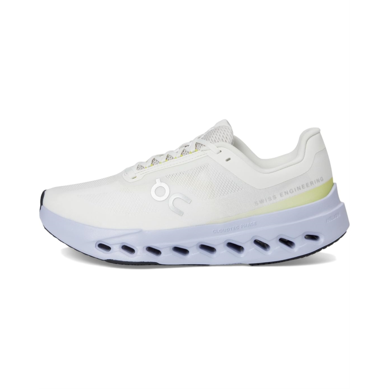 - New to the Cloudsurfer Franchise, Introducing the On Women''s Cloudsurfer Next Shoes - your perfect companion for casual runs, short distances, everyday training, tempo sessions, fast training, interval training, and more. The design for the engineered woven polyester upper is inspired by our pinnacle race shoe, the Cloudboom Echo 3. Light and breathable, it provides a comfortable and seamless fit. The CloudTec Phase midsole structure creates a seamless heel-to-toe transition. It is made with a refined Helion superfoam compound, which makes it bouncier and more responsive. The low-top shoes feature a round toe silhouette with a lace-up design, cushioned ethylene vinyl acetate footbed, and a recycled polyester lining.