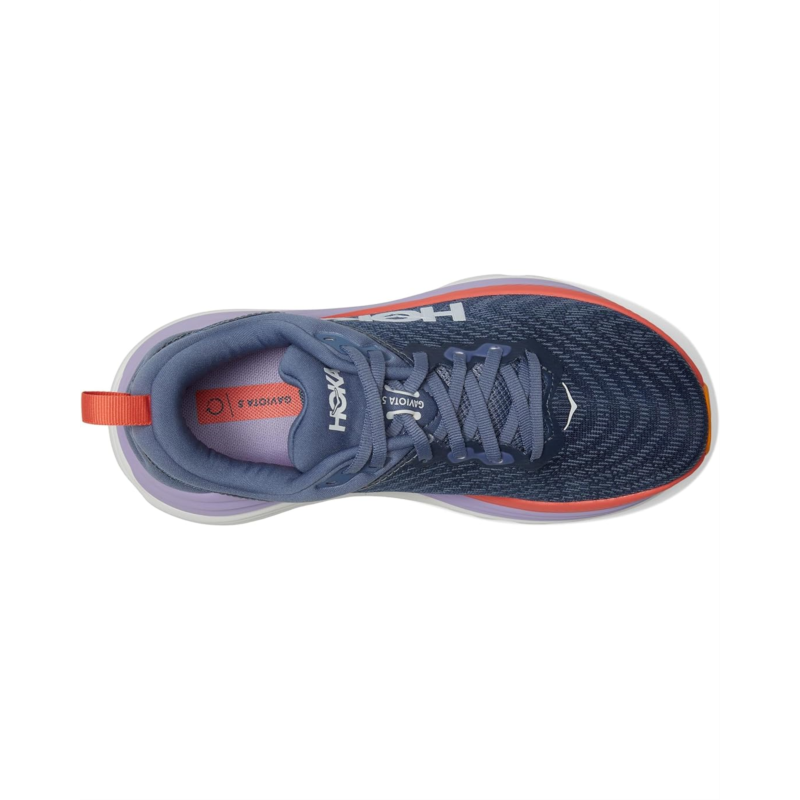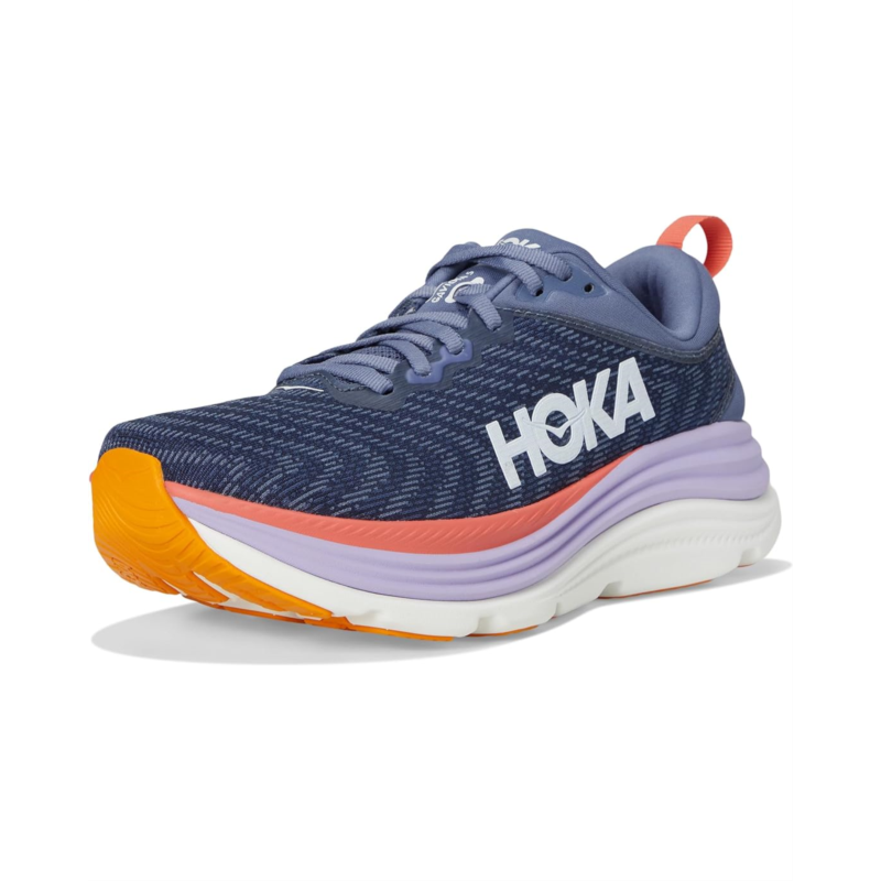 - Make life easier than ever by wearing Hoka Gaviota 5 sneakers. The shoes feature a rounded toe and lace closure with heel pull-tabs. The textile upper and lining ensure high breathability. The shoes feature a removable OrthoLite footbed and a multi-directional lug design to let you walk with unstoppable speed.