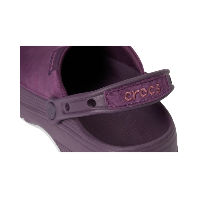 - The Crocs Classic Crafted Canvas Clogs redefine versatile style with their sophisticated canvas upper, perfect for dressing up or down. Whether paired with chinos for a polished look or denim for casual comfort, these waterproof clogs bring effortless style to any outfit. These come with a Croslite outsole for durability and support, a pivoting heel strap for a more secure fit, and iconic Crocs Comfort insole for lightweight and flexible 360-degree comfort. Ideal for those who value both function and fashion, the Classic Crafted Clog is a must-have for any wardrobe. Plus, the Jibbitz holes on the heel straps make it easy to personalize your look even more.