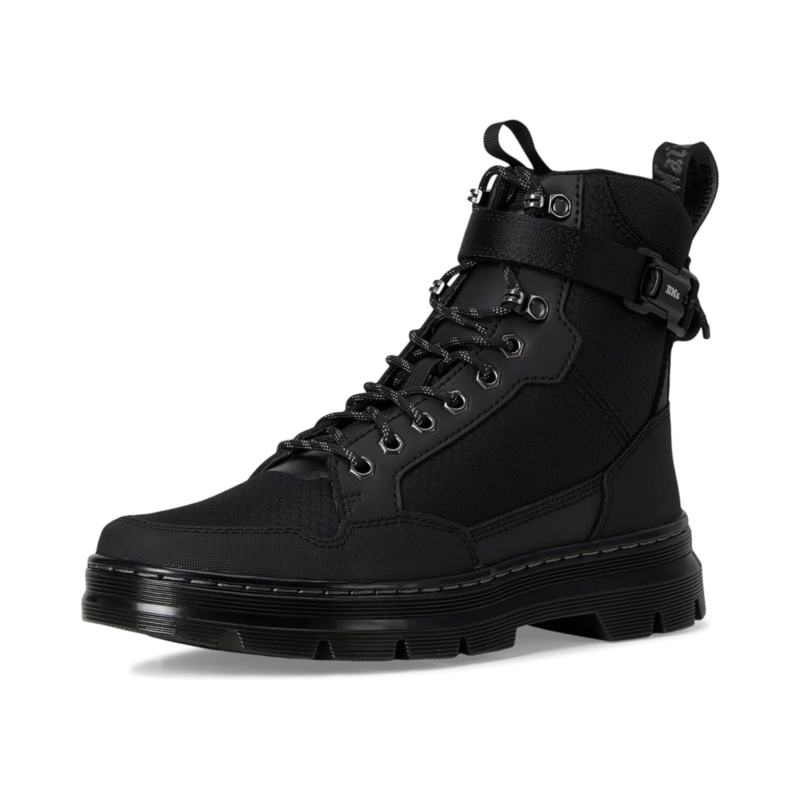 - The Dr. Martens Combs Tech Mk.. 02 boot is re-wrapped in a dual-material upgrade. Recycled Hexagon Canvas material sits alongside Ajax, a PU-coated suede upper with embossing detail, along with new ski hooks and notch detailing on the quarters. Functional detailing still dominates with an adjustable ankle strap, front pull tab, and hexagonal eyelets. DM''s black and gunmetal heel loop sits at the ankle, while black stitching and a cemented black and smoke PVC outsole give the boot a tough but lightweight finish.