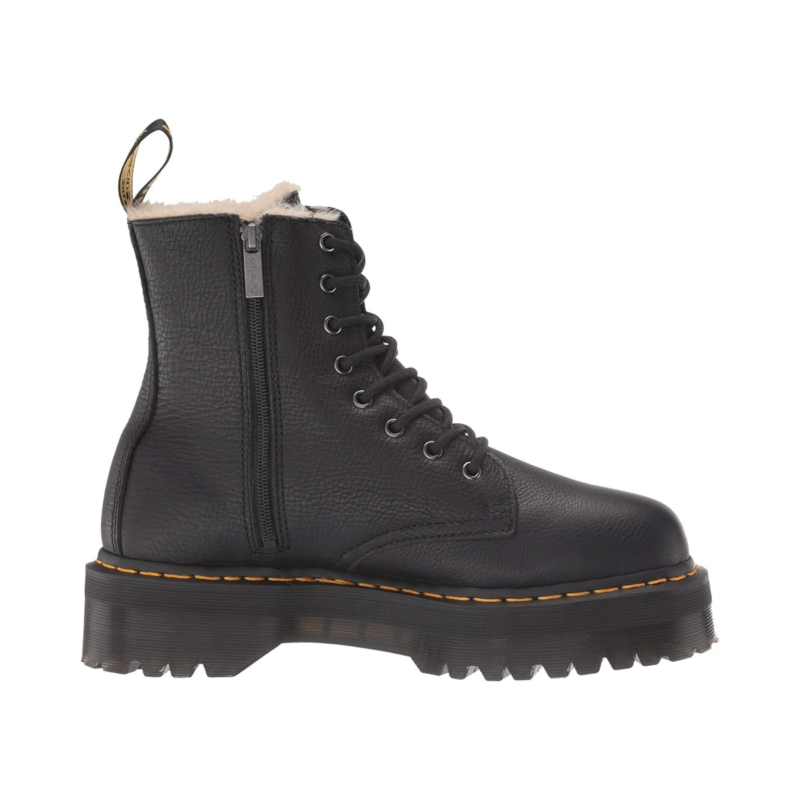 - The iconic silhouette and warm interior lining of the Dr. Martens Jadon Faux-Fur Lined boots are the ideal choice to keep in style and totally warm all season long.