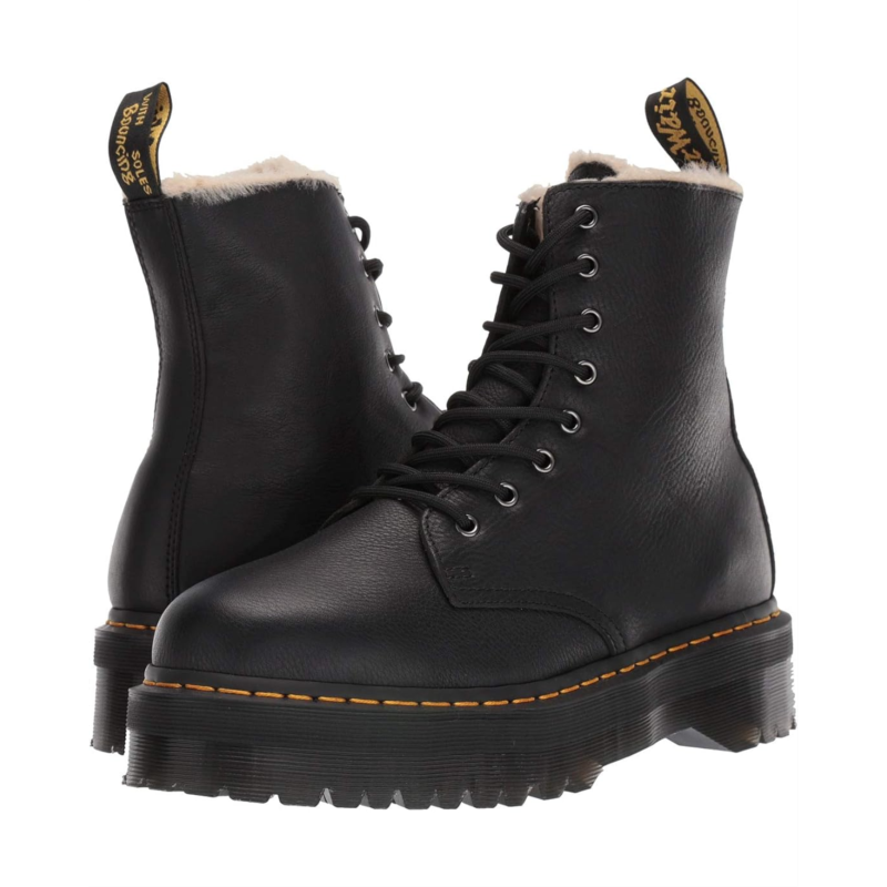 - The iconic silhouette and warm interior lining of the Dr. Martens Jadon Faux-Fur Lined boots are the ideal choice to keep in style and totally warm all season long.