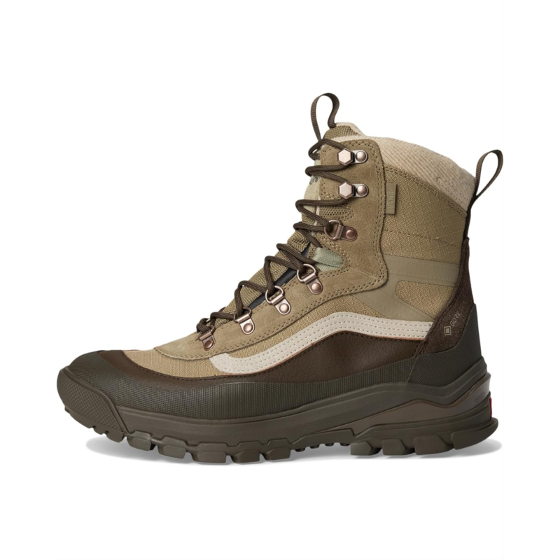 - Comfortable and cozy, the Vans U Mte Snow-kicker Gore-tex Boots create the perfect environment for your feet. Engineered with a breathable waterproof internal bootie that allows moisture to escape while keeping snow and rain out, the GORE-TEX guarantees to keep you dry. The high-top boots come with a canvas upper with a lace-up closure, leather lining, and a rubber insole.