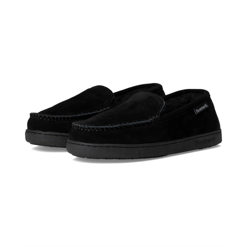 - Effortlessly transitions from cozy indoor moments to stylish outdoor adventures wearing the Bearpaw Brian Loafers. Treated with BearCoat Rain & Stain Repellent coating, the slip-on style loafers feature a suede upper, wool blend lining, and a faux shearling insole.
