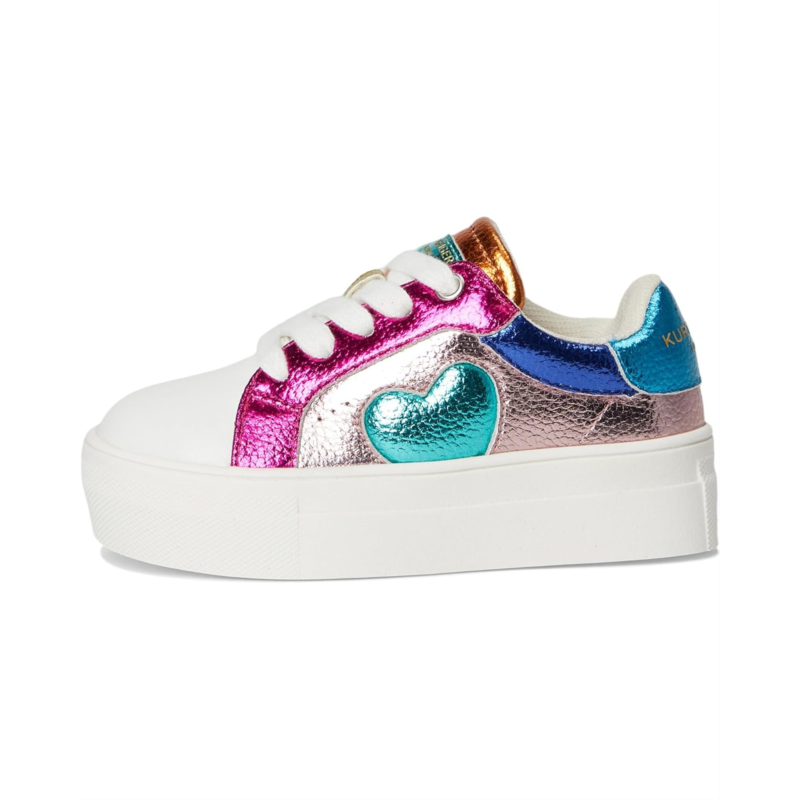 - The Kurt Geiger London Kids Mini Luckson Heart sneaker combines comfort and versatility, making it a great choice for everyday wear. Featuring a cushioned sole for superior support and a secure lace-up closure, this shoe ensures a snug and comfortable fit. The lightweight construction allows for all-day ease, while the durable rubber outsole provides reliable traction.