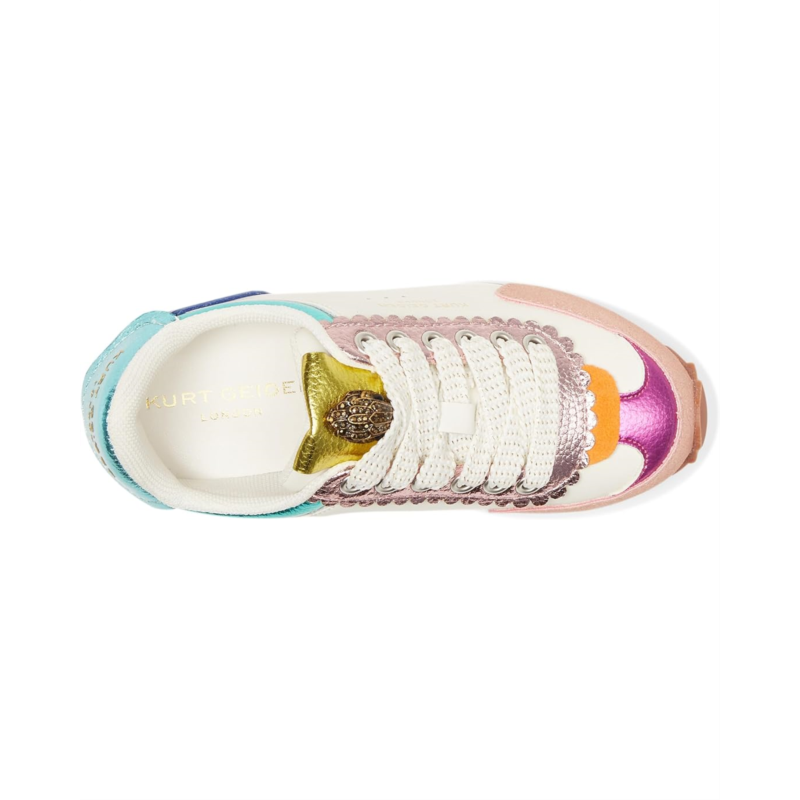 - Let your little one play around with joy and comfort wearing the Kurt Geiger London Kids Mini Runner Sneakers. The high-top sneakers come in a sleek low-profile silhouette with a multicolored leather upper, leather lining, and an EVA insole.