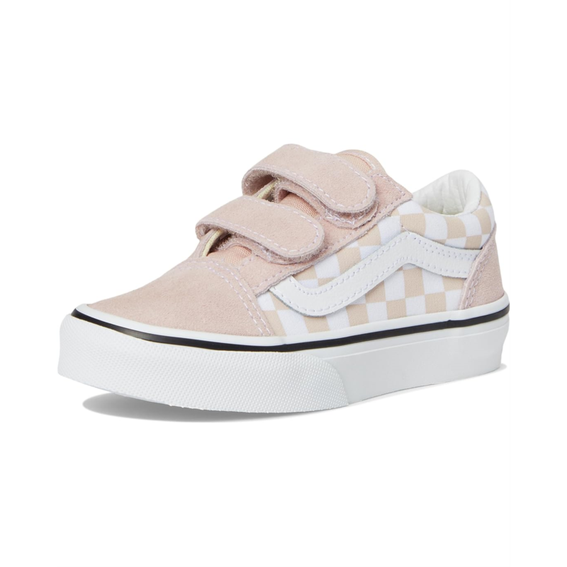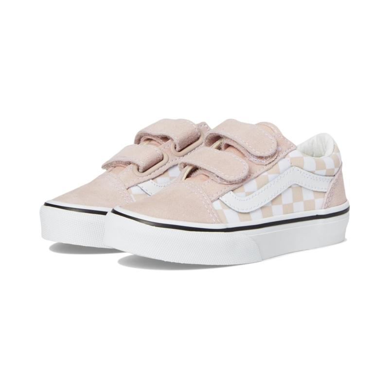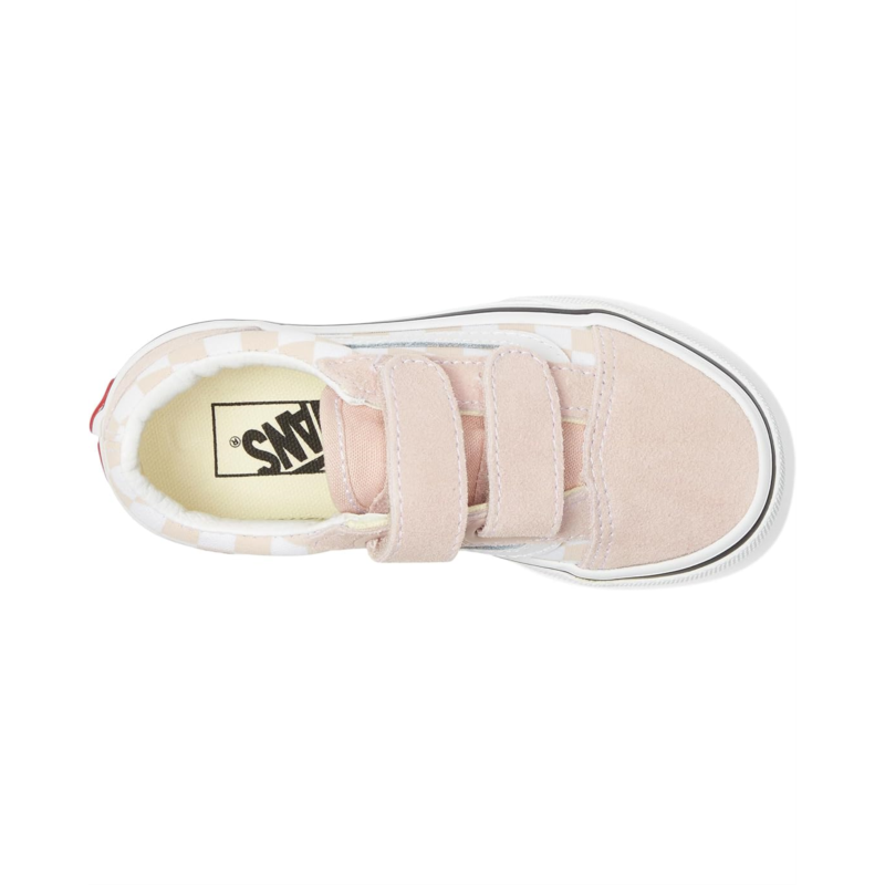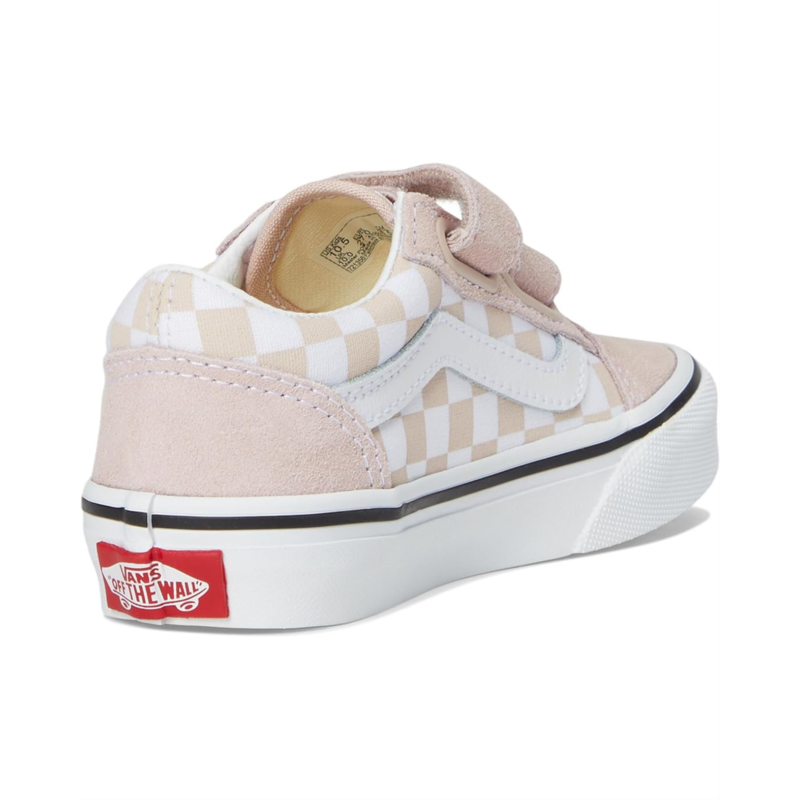 - These Vans Kids Old Skool V shoes are made for little ones who love to play and explore. The durable suede and canvas upper will keep up with all their adventures, while the cotton lining and rubber insole ensure comfort. With the iconic low-top silhouette and Sidestripe shoe design, these sneakers are a stylish addition to any kids wardrobe.