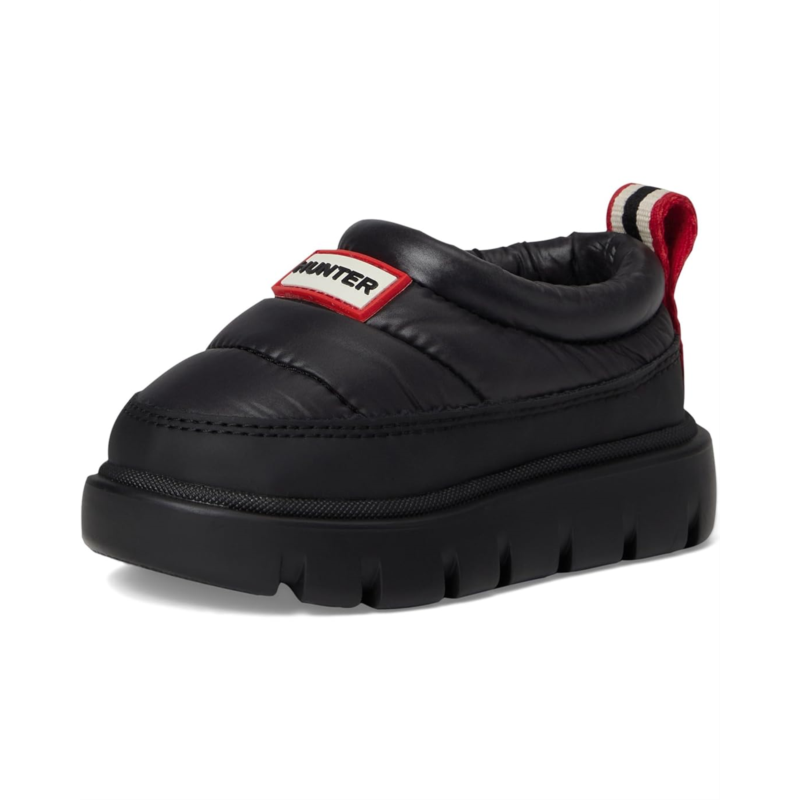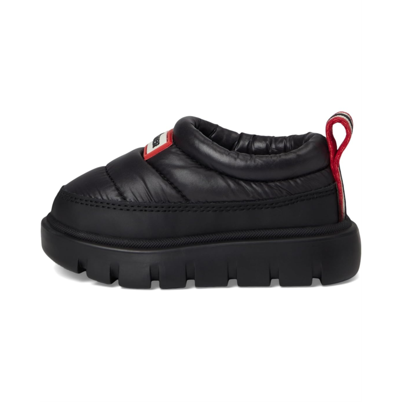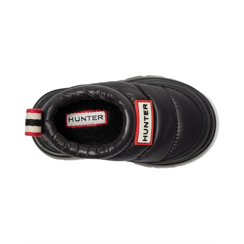 - The Hunter Kids Codys are your little explorers new go-to mules, designed for everyday escapades with a fashion-forward twist. Crafted with a durable nylon upper and a cozy polyester fleece lining, these ankle-high slip-ons keep tiny feet warm and comfortable, while the EVA cushioned insole provides all-day support. The water-resistant design means puddles and splashes wont slow down their fun, and the synthetic rubber outsole ensures steady traction on every surface. Featuring a convenient pull-on style and a rounded toe for natural movement, the Codys combine practicality with trend-savvy appeal.
