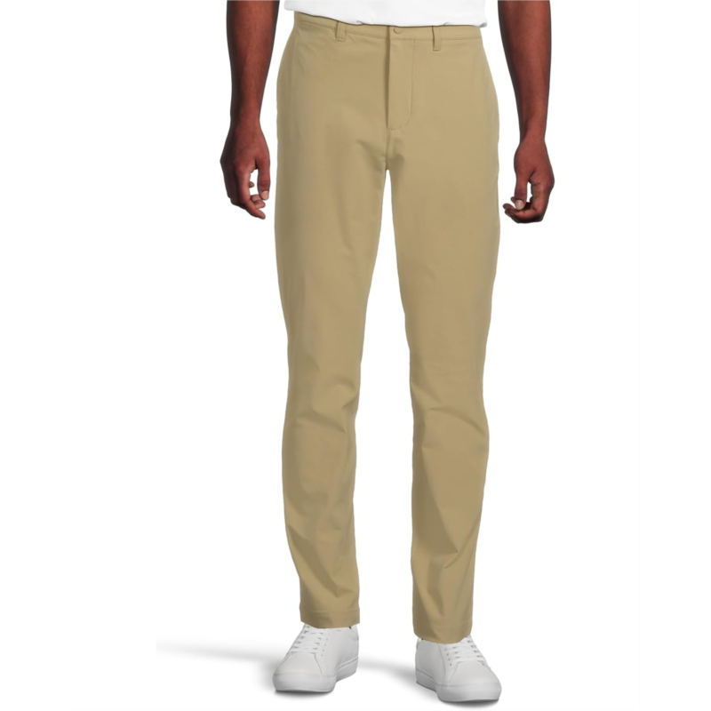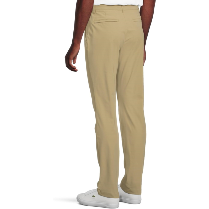 - The Lacoste Commuter Pants are designed for maximum comfort and freedom of movement. A lightweight style that is perfect for warmer days, these chino pants are crafted from stretch polyester fabric for superior comfort and durability. Designed in a straight leg silhouette, these mid-rise pants are finished with a zip-fly, tonal snap closure, and belt loops. Featuring ergonomic finish details, these pants are styled with a tonal crocodile embroidered over the back pocket.