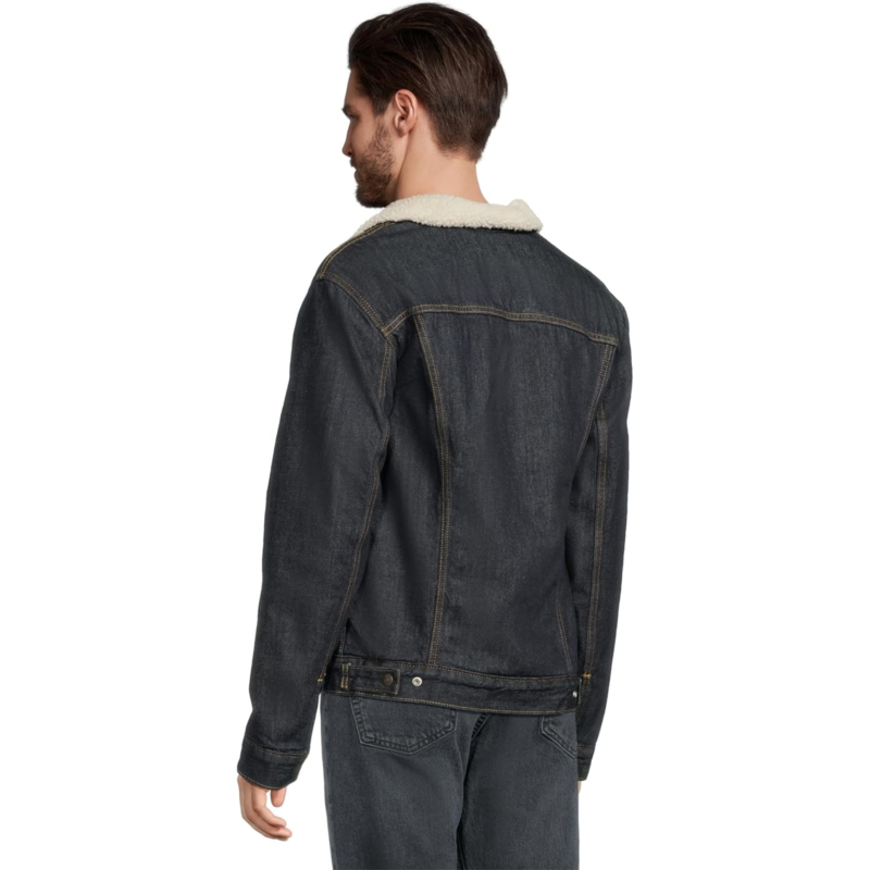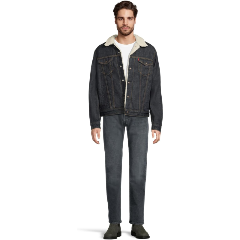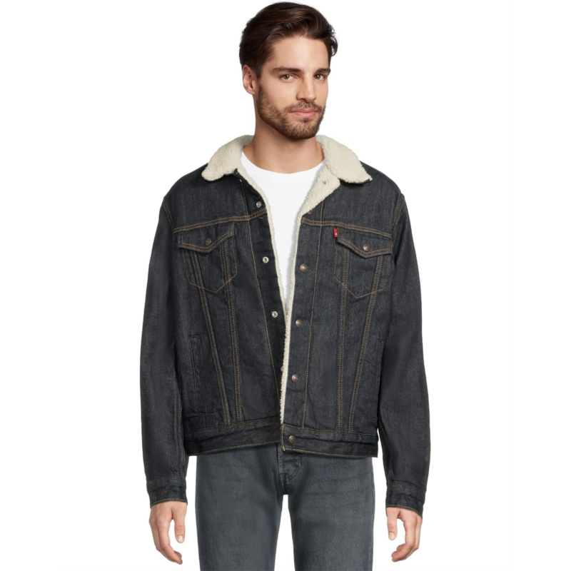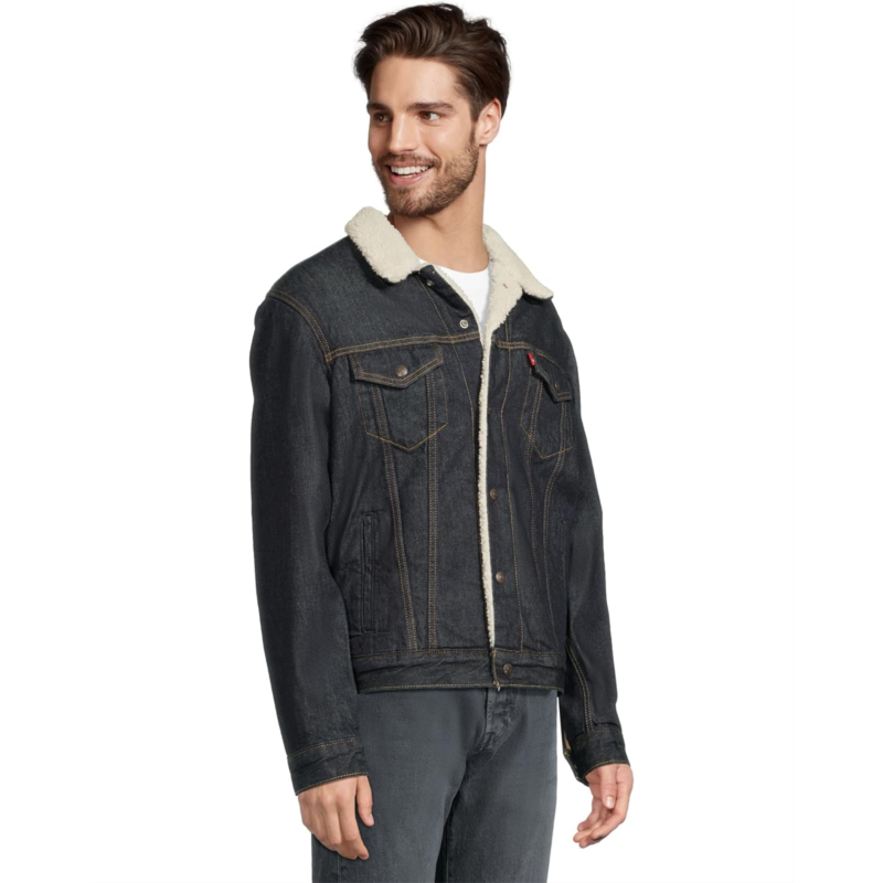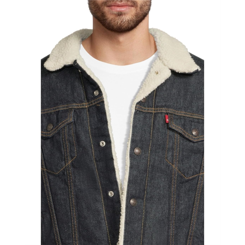- The cozier counterpart to the brand''s Original Trucker Jacket, the Levi''s Men''s Relaxed Fit Plaid Trucker jacket is constructed with durable denim and lined with fuzzy sherpa for extra warmth. Iconic and instantly recognizable, this jean jacket has been a symbol of individual self-expression for decades. Its buttoned front closure features Levi''s branded metal buttons and tapered ''V'' stitches that make it instantly recognizable. This button-down jacket is styled with long sleeves, a collared neckline, and a straight hem. Featuring an allover plaid pattern, this iconic essential truly looks good on everyone, even when sized up or down.