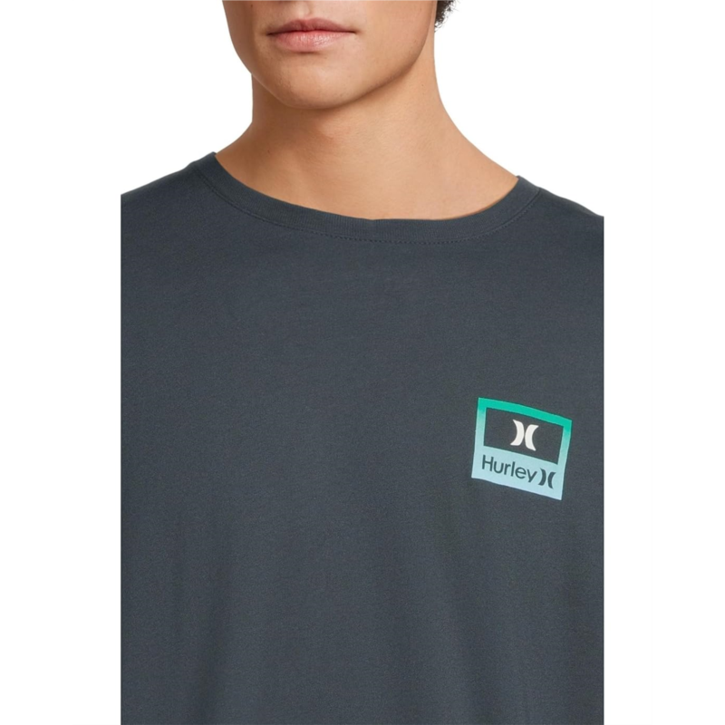 - Clean lines meet coastal attitude in the Hurley Divide Short Sleeve Tee. The split Hurley logo graphic delivers a bold yet minimal look, while the soft cotton fabric keeps you feeling easy and effortless all day long. It has a crew neckline, short sleeves, side seam construction, and a straight hem.