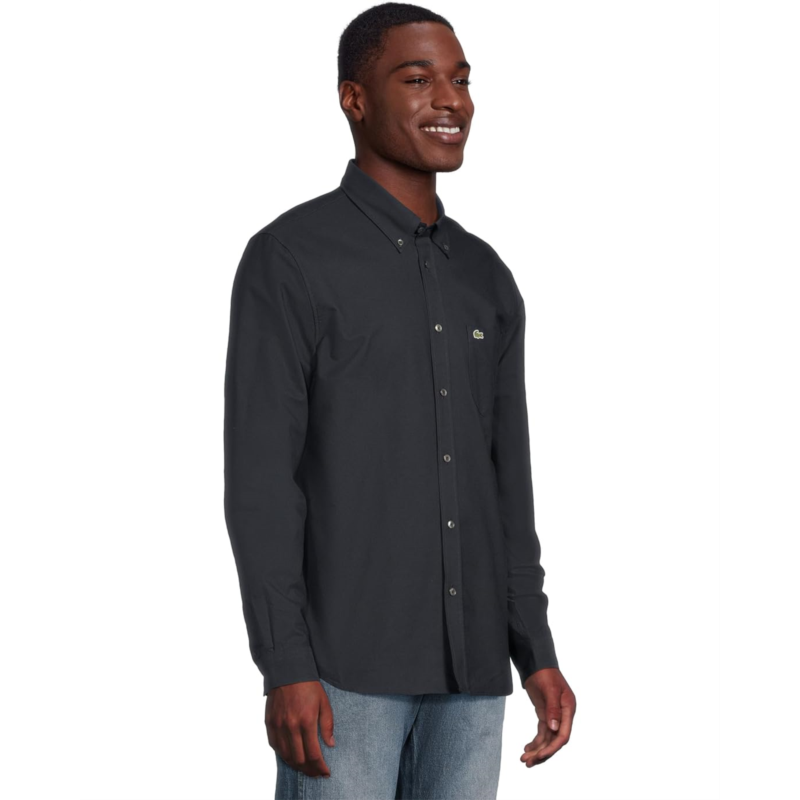 - Give a stylish yet sophisticated touch to your professional style wearing Lacoste Long Sleeve Regular Fit Oxford Button-Down Shirt. Designed to provide a regular fit, the shirt features a button-down collar, full-button closure on the center front, long sleeves with buttoned cuffs, and shirttail hem.