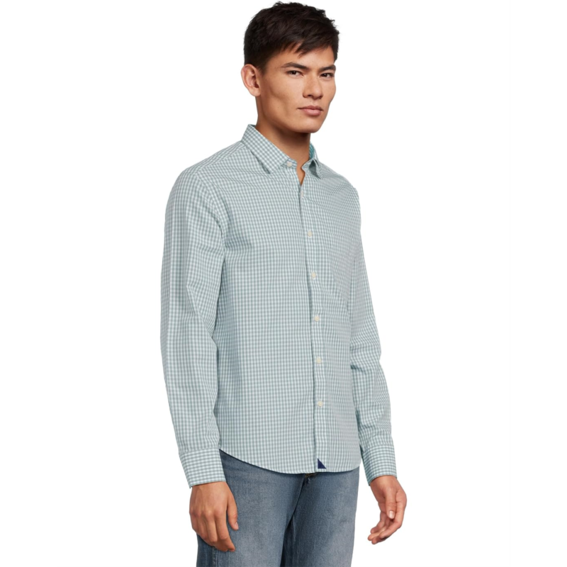 - Ditch your iron and get out the door faster. This UNTUCKit Long Sleeve Wrinkle-free Lawrence Shirt comes out of the dryer ready to wear with no wrinkles. It combines fine shirt details, a polished button-down collar, single-needle side seams, structured cuffs, and unbreakable buttons, with the comfort of an untucked shirt. The gingham pattern will work perfectly at any event, from a laid-back event to an evening dinner party. Made from cotton, it is styled with long sleeves, a button-down collar, a Navy signature sail, and a shirttail hem. Pair it with chino pants or your favorite jeans for an easy look.