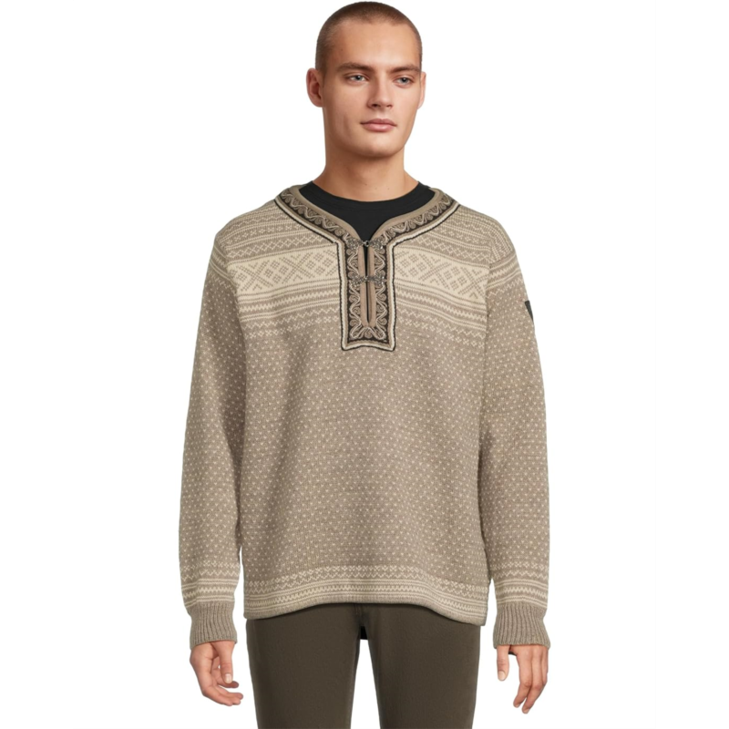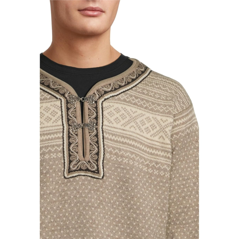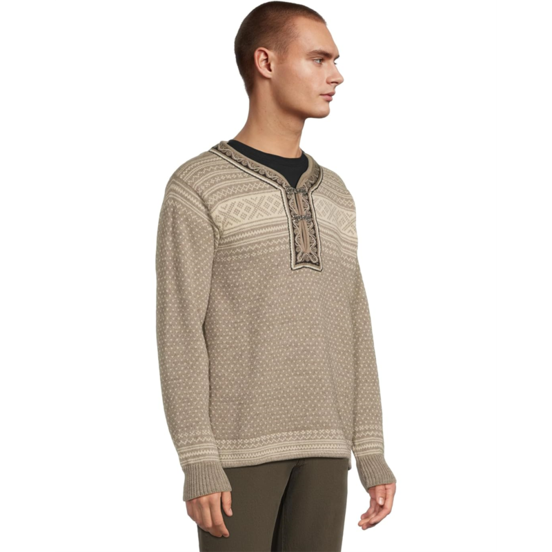 - The Dale of Norway Setesdal Unisex Sweater features a Setesdal design that is the most recognizable Norwegian pattern and has been knitted for generations. Its small, V-shaped dots are known as the lice pattern, while the crosses were believed to protect from evil spirits. Made with 100% undyed, lightweight Norwegian wool, this pullover sweater has Norwegian-made pewter clasps and an embroidered band, identical to the original design. It is styled with long sleeves, ribbed cuffs, a V-neckline, and a straight hem.