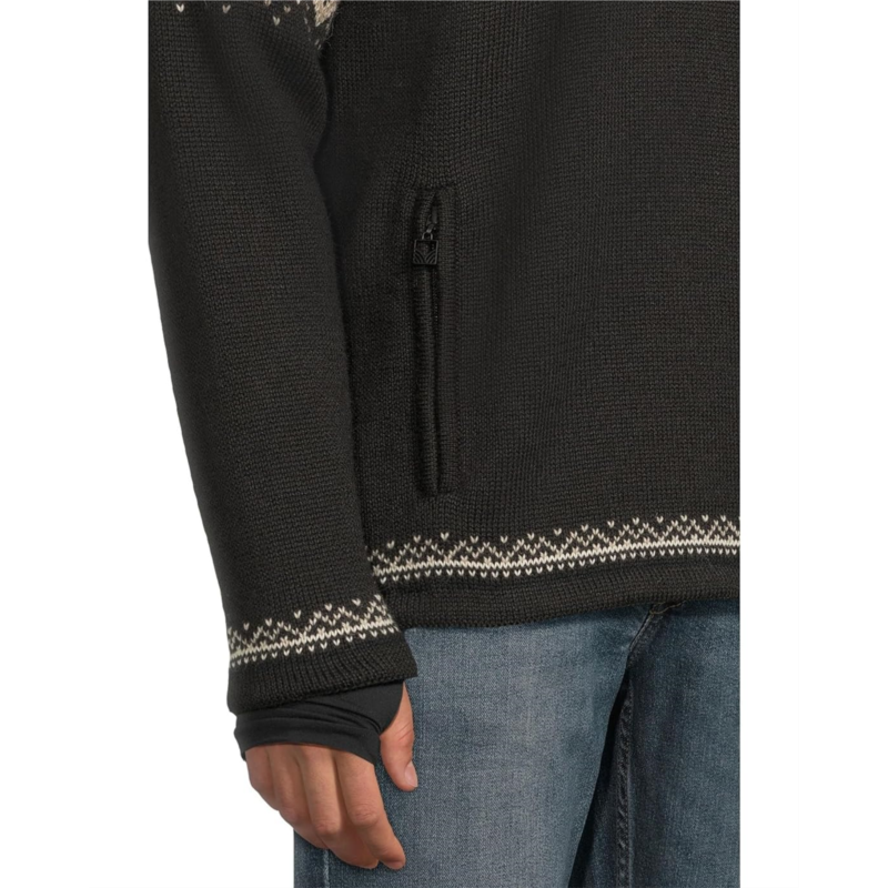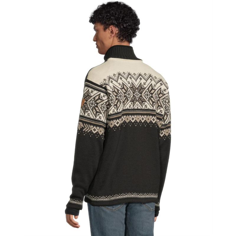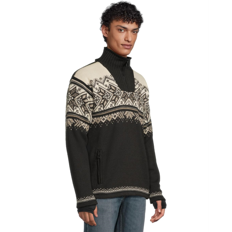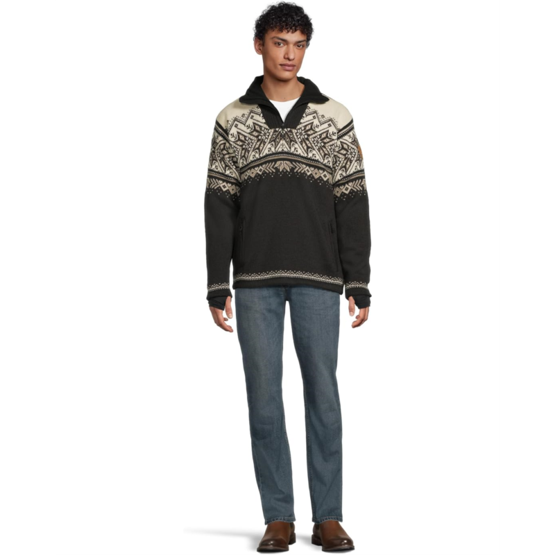 - A knit sweater in traditional winter sports styles to suit an active lifestyle, the Dale of Norway Vail WP Masc Sweater features a detailed 8-petal rose pattern with decorative winter elements. It is made from lightweight and long-lasting wool with premium knit quality for maximum comfort, softness, and strength. This warm and breathable woolen sweater comes with a windproof lining and is water-resistant. The quarter-zippered front placket, long sleeves, a med-high neckline, and a straight hem add to its style and comfort. Its stand collar is lined with fleece for added warmth. Ideal for both indoors and outdoors, this patterned sweater keeps warmth in and allows moisture to escape to keep you warm and dry all day.