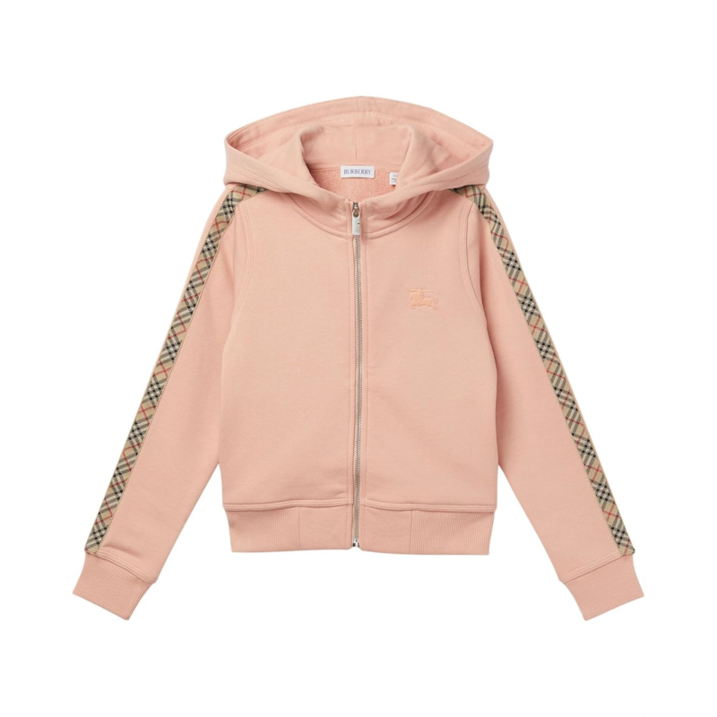 - Built for cuddles, the Burberry Kids Elin Check Tape is perfect for cold days. It features attached hood neckline, long sleeves, zippered front closure, loose fit, brand tapering details on the sleeves, and brand logo on the left chest.