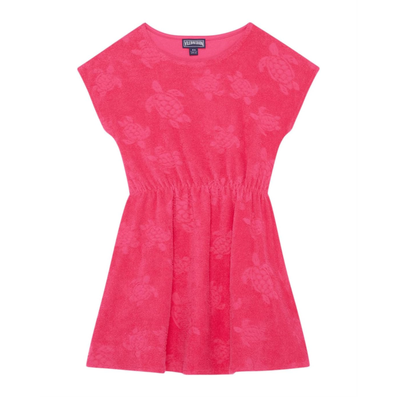 - A short-sleeved terry fabric dress with a comfortable elasticated waistband and the iconic Vilebrequin turtle embroidered on the chest to offer eye-catching style. This dress offers a round neckline with cap sleeves in a pull-on style.