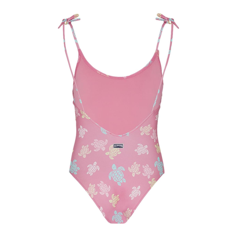- A playful one-piece swimsuit for girls, featuring colorful turtle prints and charming knotted straps. With a classic round neck, it''s designed for fun and comfort all day long.