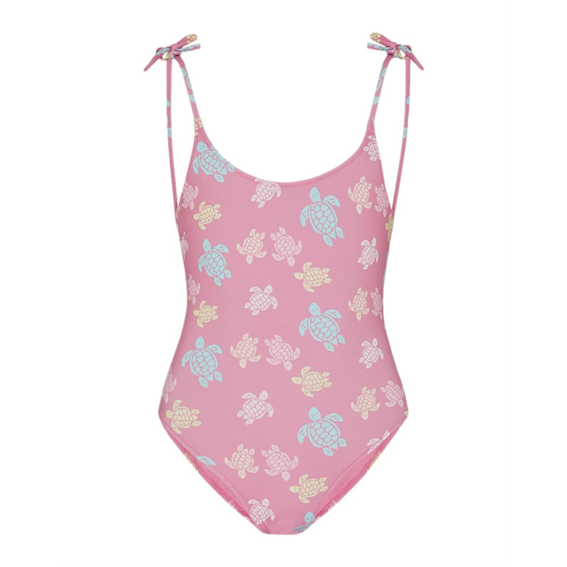 - A playful one-piece swimsuit for girls, featuring colorful turtle prints and charming knotted straps. With a classic round neck, it''s designed for fun and comfort all day long.