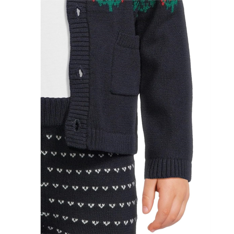 - Keep them warm and cozy in the festive Janie and Jack Trees Intarsia Sweater Set. Featuring a crew neckline with a front button closure, long sleeves, front patch pockets, knit detailing, and ribbed trim on the collar, cuffs and hem.