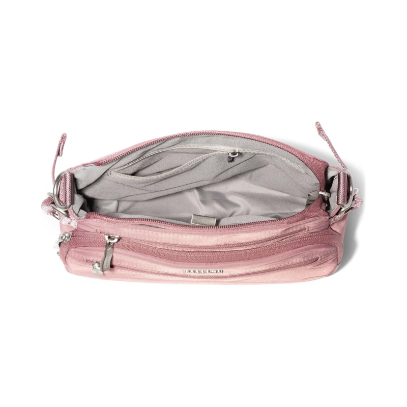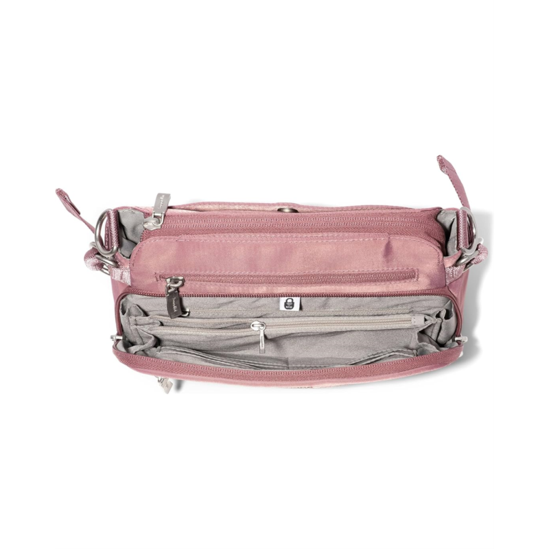- This Baggallini Marais Crossbody Bag makes accessing your essentials quick and easy. Keep cards and cash separate from the main compartment with a built-in wallet with RFID-protection. It features a detachable & adjustable crossbody strap, 6 credit card slots, lipstick loop, privacy pocket, and a zipper closure. Need a spot for your phone, too? Store it in the scratch-resistant phone pocket and access it when needed-no fumbling with zippers.