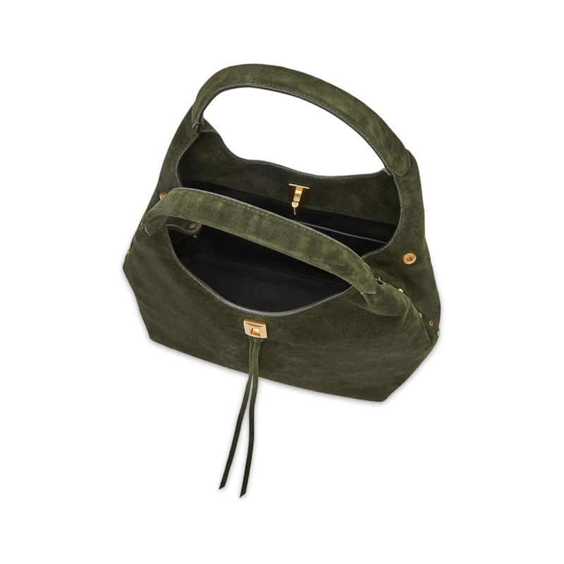 - Timeless, minimal design with maximum versatility, the Rebecca Minkoff Darren Carrysome purse carries you through it all. Crafted from soft suede leather, it features antique brass hardware, an interior slip pocket, and a turn-lock closure to keep your essentials secure. The detachable and adjustable shoulder straps and top grab handles ensure versatile styling.