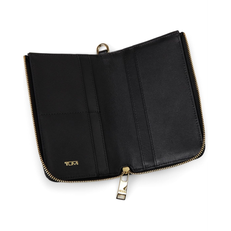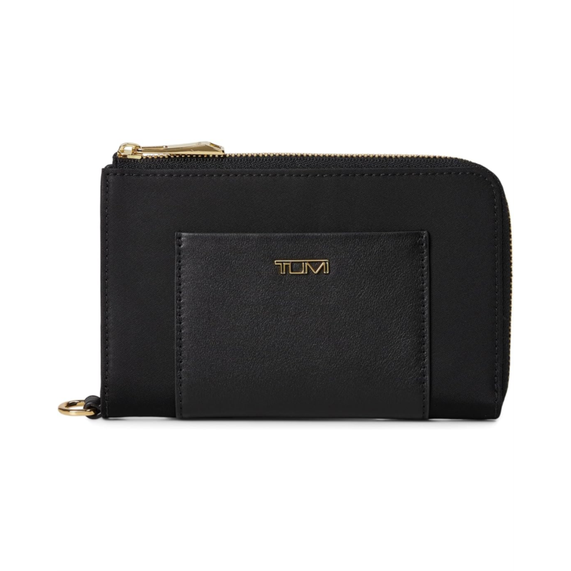- Keep your essential travel items secure with this handy zip case that features designated pockets for your passport, cards, coins and other important documents. Featuring four card pockets, two slip pockets, leather front slip pocket, back zip pocket, D-ring, and zip entry to main compartment.