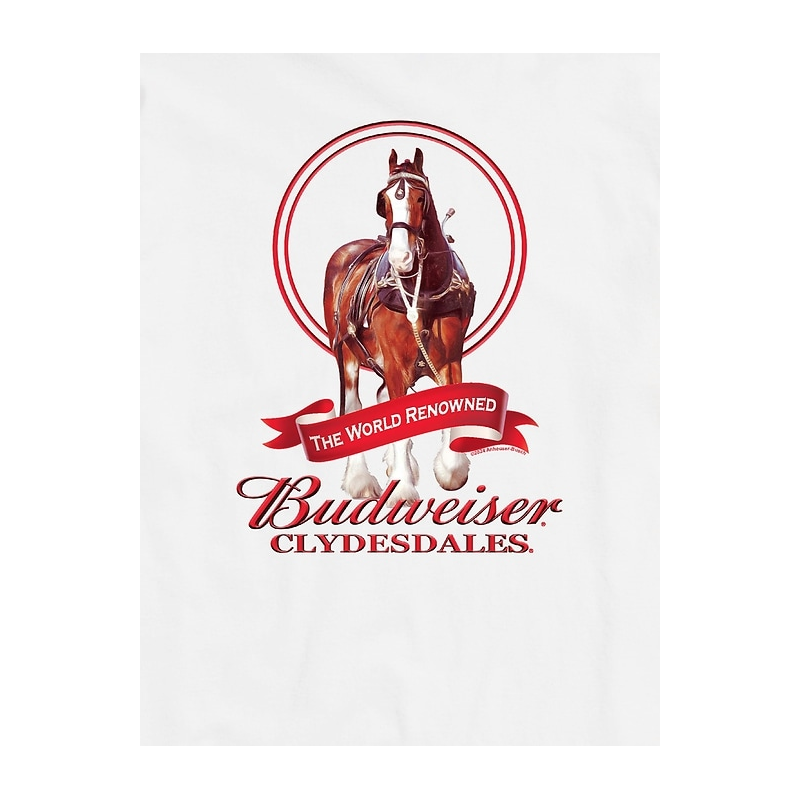 - Featuring the iconic Clydesdales decked out for the season, this cozy and festive tee is perfect for celebrating the holidays in classic Budweiser style.