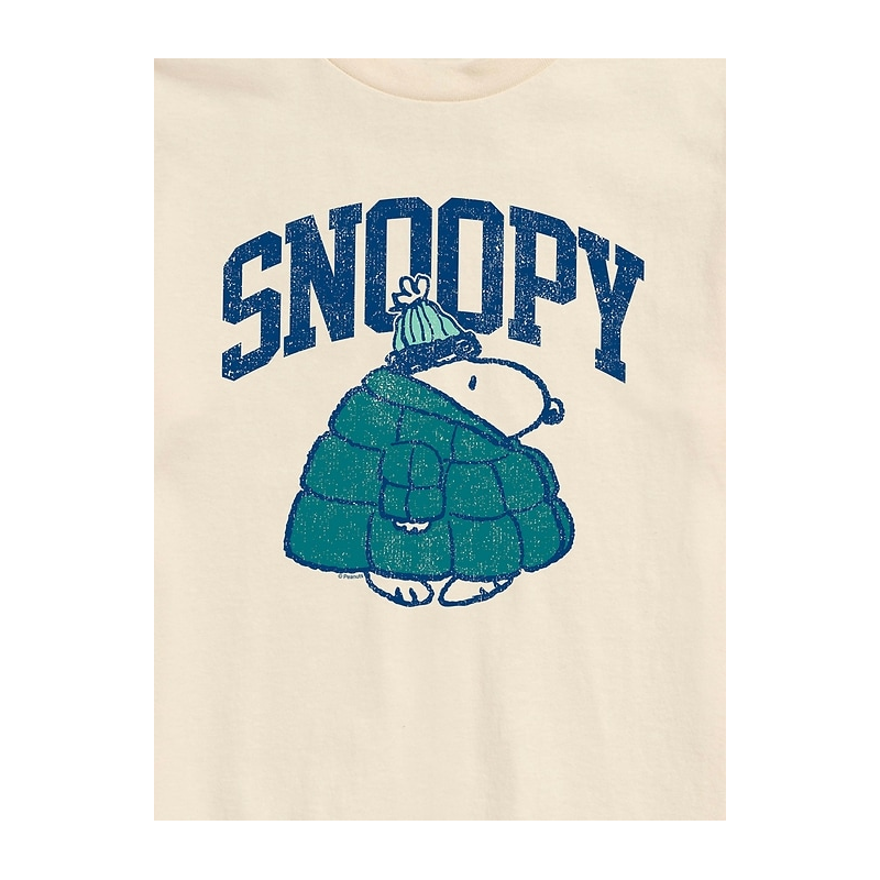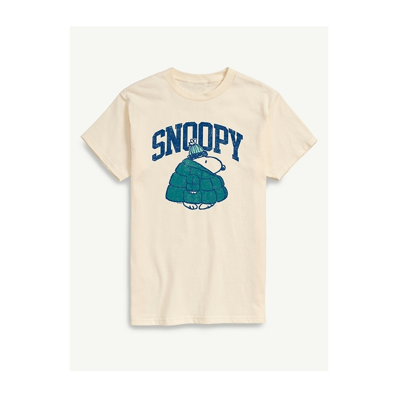 - Featuring Snoopy looking cool in his winter puffer, this playful tee brings cozy vibes and classic Peanuts charm.
