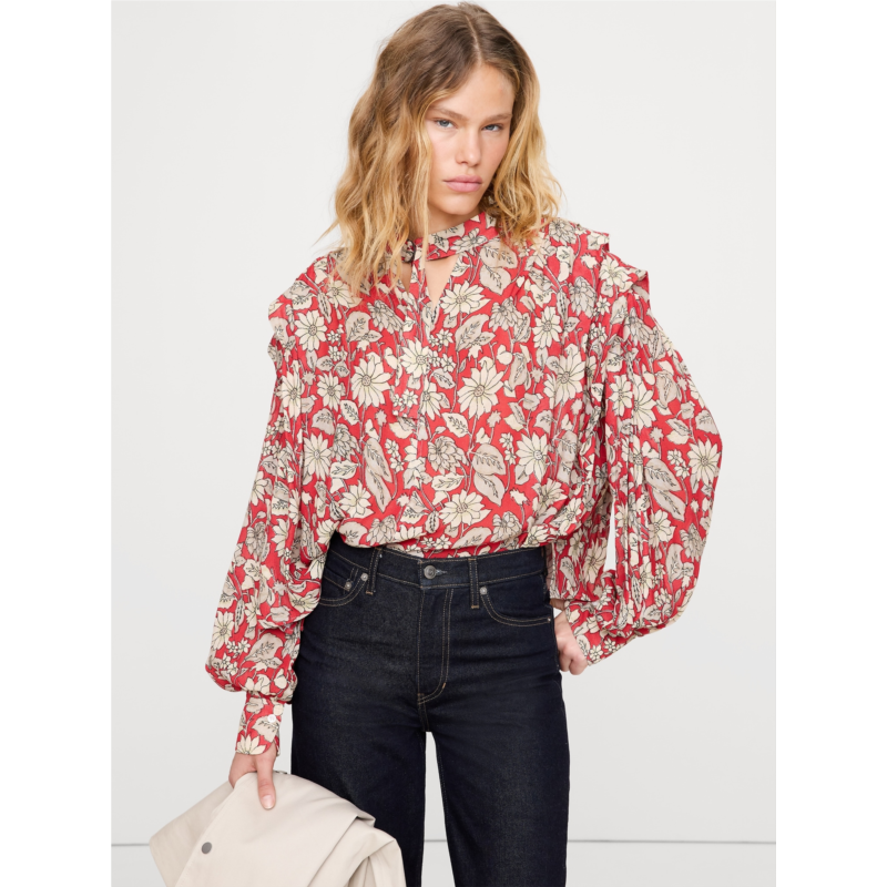 [US] Bananarepublic Sheer Pleat-Shoulder Top