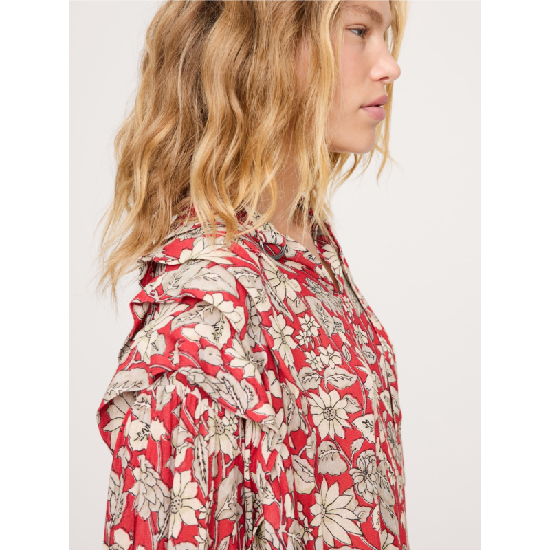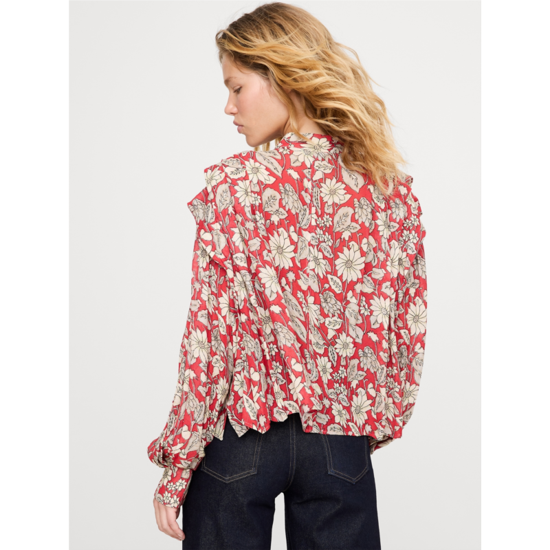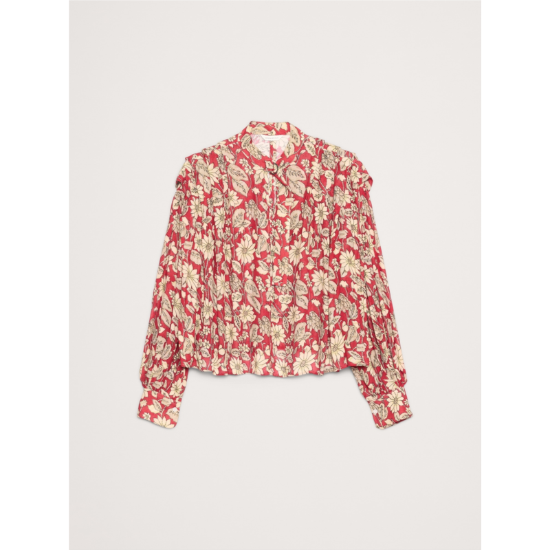 - Theres so much to love about this top: the flowing silhouette, the high neck, and the delicate pintucks at the shoulders. Cut in asemi-sheer, printed fabric that’s easily dressed up or down.