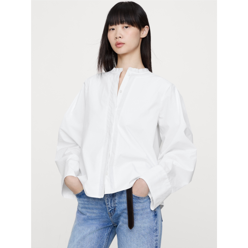 [US] Bananarepublic Cotton Poplin Banded-Collar Top