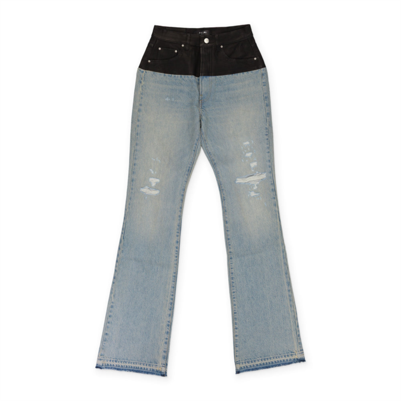 [US] Amiri sky indigo/black hybrid bootleg w/ leather jeans