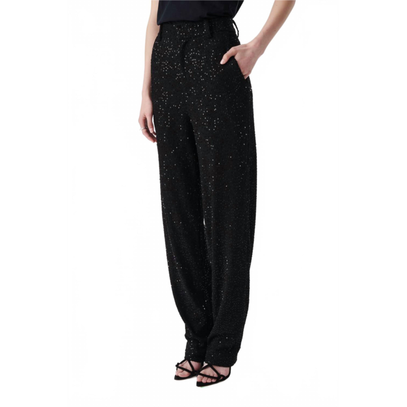 Elevate your holiday party look with the Morine Straight Cut Sequin Trouser by IRO, a minimalist piece in stunning black. These trousers boast a regular fit with a straight leg style and a convenient pull-on closure. Crafted from polyester, they feature a patterned design that is perfect for fall festivities. With functional pockets, they are as practical as they are stylish, making them a must-have for your elegant Thanksgiving or holiday ensemble.