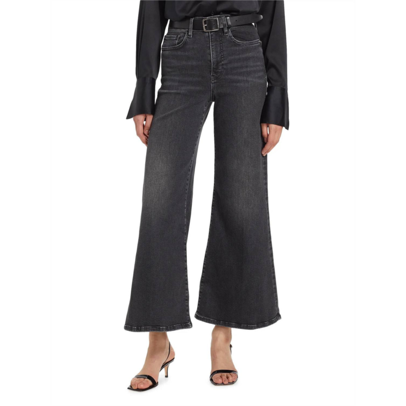 The perfect cropped jean for those transitional seasons.The Le Palazzo Crop Jean by FRAME, offered in the sophisticated ''Atmosphere'' color, is an essential piece for an elegant evening event. Designed with a high-rise slim fit, these jeans showcase a wide, flared leg that crops neatly at the ankle, boasting a comfortable 29'' inseam. Crafted from a blend of 92% cotton, 4% polyester, and 4% elastane, these denim jeans provide stretch for ease of movement, while the concealed zip fly and button closure ensure a polished finish. Care is simple with a machine wash, making these jeans both stylish and practical for a vintage-inspired fall wardrobe.