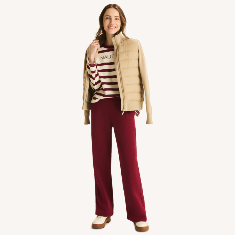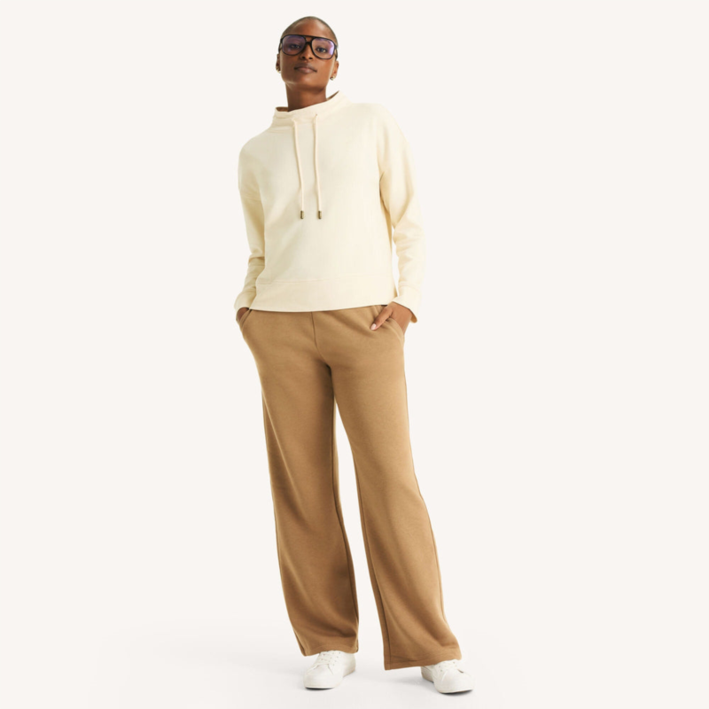Whether you choose to lounge at home or run a few errands, this fleece sweatpant is the ultimate cozy choice. It features an easy elastic waist, side pockets, and a cool, wide leg.
