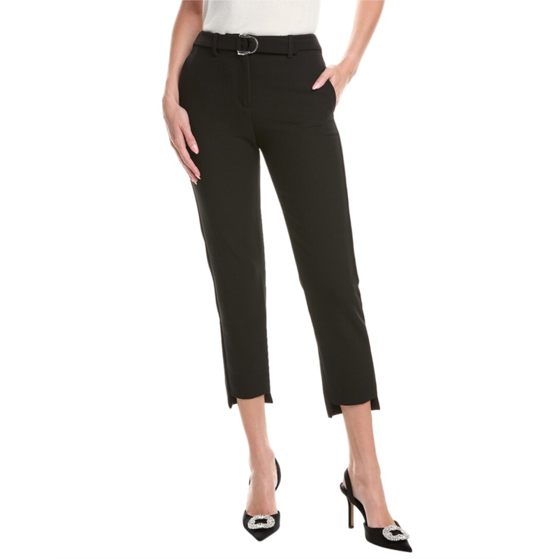 Introducing the Maje Pant, a versatile and stylish addition to your wardrobe. These casual pants feature a sleek Noir color, side pockets, and a removable belt for added flair. The zip fly with slide tab closure ensures a secure fit, while the 64% Polyester, 32% Viscose, 4% Elastane blend offers comfort and flexibility. With an inseam of approximately 25 inches and an 11-inch rise, these pants are designed for a flattering fit. The model is 5''10.5'' and is wearing a size 36. Made with a 100% cotton lining, these pants are easy to care for with a simple machine wash. Imported from Maje, these pants are a must-have for your casual clothing collection.
