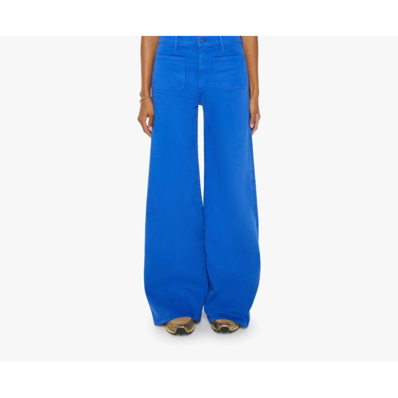 High-waist is here to stay and we especially love this style.Dive into style with the Patch Pocket Undercover Sneak Jeans by Mother, crafted in a vivid Snorkel Blue hue for a bold look. These relaxed fit high-rise pants feature an impressive 32-inch inseam and practical patch pockets, ensuring both comfort and functionality. Made from a cotton blend composition of 94% cotton, 4% polyester, and 2% elastane, they boast stretchability and durability. Closure - Button closure. Care - Machine wash and tumble dry low, perfect for easy maintenance and summer vacations alike.