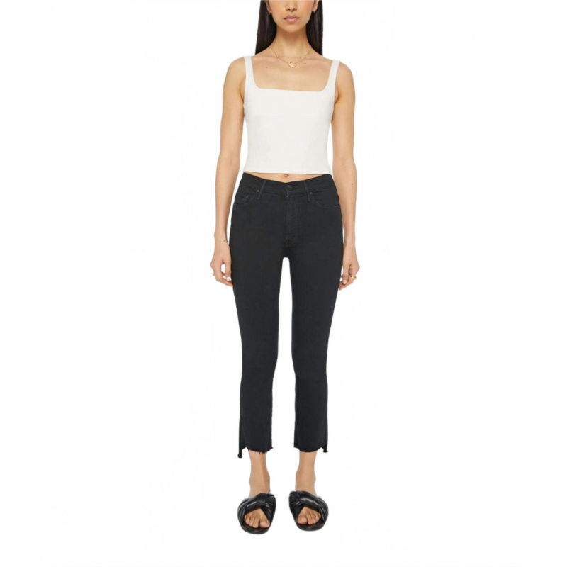 The perfect cropped jean for those transitional seasons.Discover the Insider Crop Step Fray Jeans by Mother, crafted for the minimalist wardrobe in a stylish Not Guilty color. These jeans feature a solid pattern in a regular, straight leg fit with a unique raw-cut step hem and light whiskering details. Made in the USA from a durable cotton blend?92% cotton, 4% elastane, and 4% polyester?they offer 5-pocket styling and a practical button and zip fly closure. Care instructions are simple - machine wash and tumble dry, ensuring these jeans are as easy to maintain as they are to wear. Enjoy a relaxed summer vibe with a 14 knee and leg opening, perfect for a vacation wardrobe.