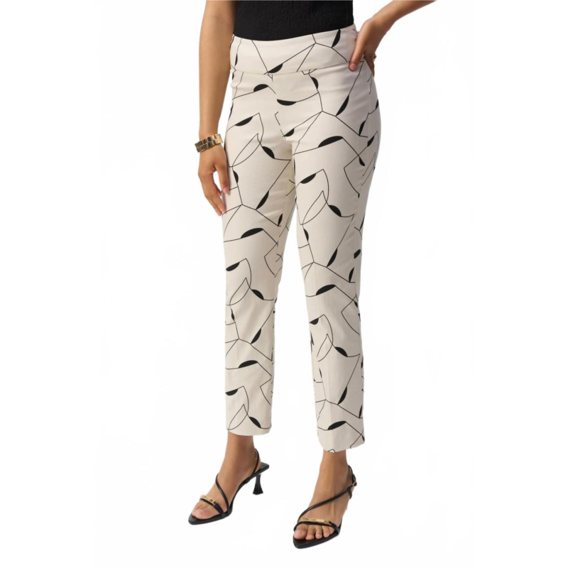 Joseph Ribkoff geometric print straight pants in moonstone/black