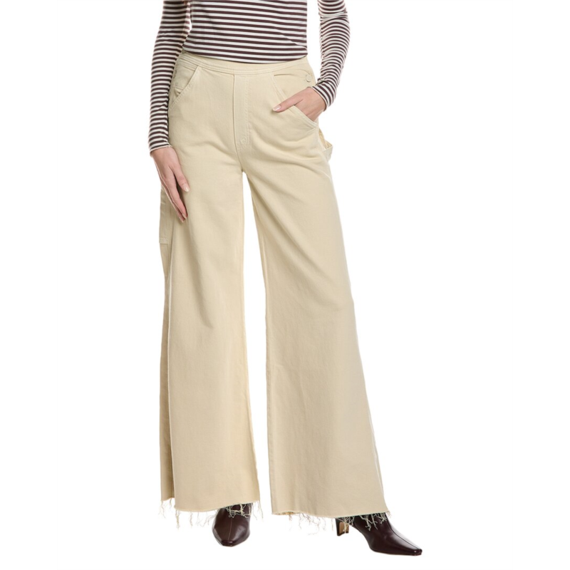 [US] MOTHER the main sail sneak fray super high-waist linen-blend mojave desert wide