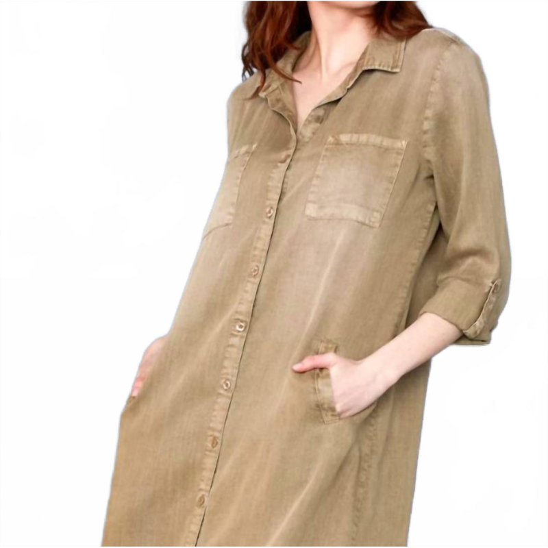 Nothing wrong with a little shoulder action.Wear your mood, in the beautiful Chill Out Shirtdress in soft Lyocell, with front pockets, button-front and sleeves, and Hi-Lo hem.The model is 57 wearing size SmallFabric - 100% LyocellLength - 42 from shoulder