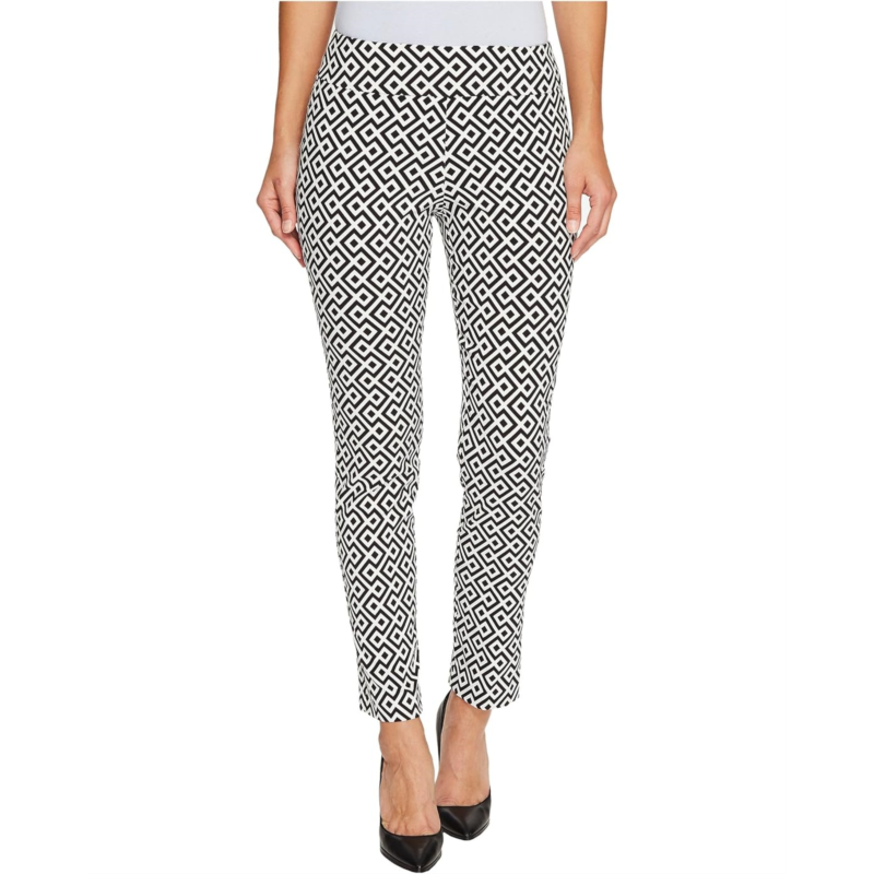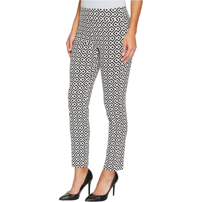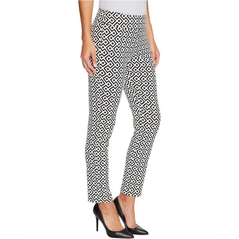 Dressy figure-flattering pant boasts a smooth blend of nylon and rayon with spandex for a smidgen of stretch.