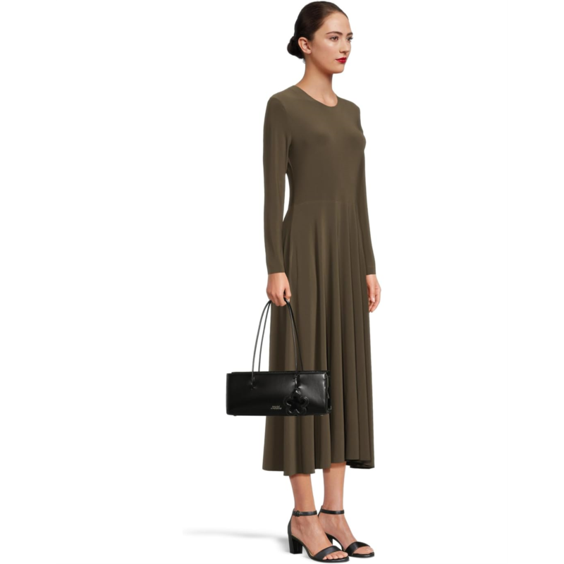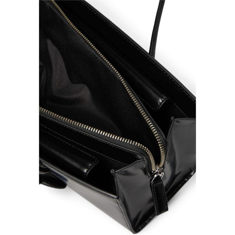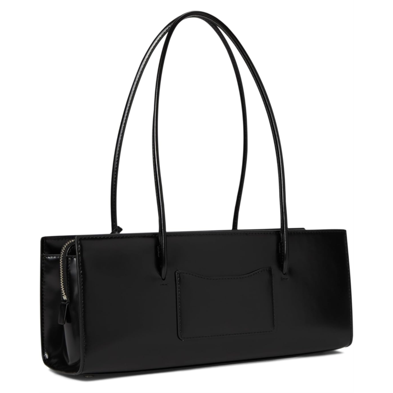 The Marc Jacobs The Glam Mirror Satchel is a sleek, sculptural bag crafted with high-shine leather in a contemporary east-west silhouette. A signature daisy-shaped mirror charm hangs from the bag, blending functionality with playful elegance. Designed with magnetic closures, it features a dual-compartment interior, a zippered central divider, and convenient card slots.