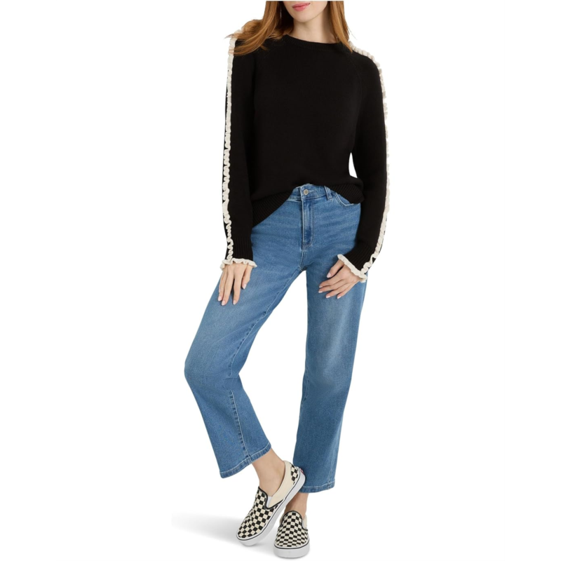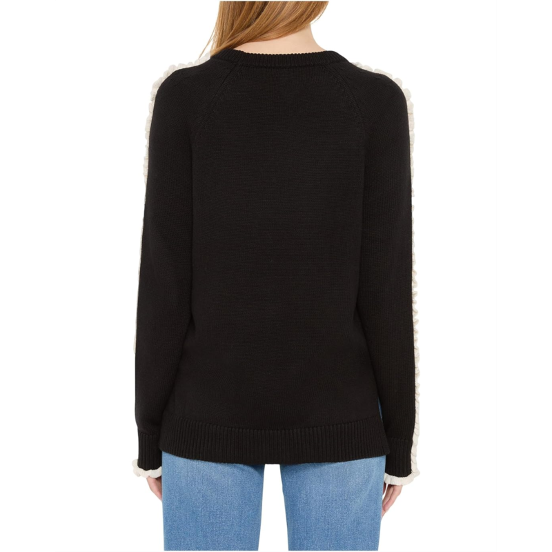 Cozy up and shine with crafted embellished knitwear: a key to elevated layering. Feminine and timeless, The Ruffled Down Sweater features unique ruffle detailing from the shoulders down to the cuffs. With a unique high/low hem and comfy raglan sleeve. Includes just a touch of cashmere in the yarn to add an extra bit of softness.