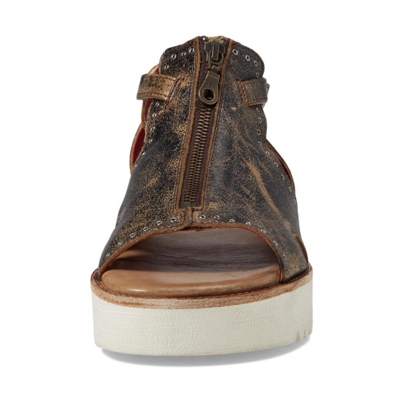 Stay lighthearted and enjoy hours of fun in the Bed Stu Clancy sandals boasting a cut-out leather upper with metal grommet details and whimsical zip up the foot, with a unique white brushstroke finish.